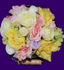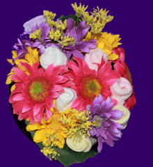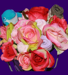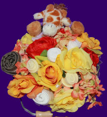 New Moms and moms-to-be will appreciate The Baby Blossom Bouquet.  The Baby Blossom Bouquet is an arrangement of baby clothing and accessories made to look like a bouquet of flowers.  More practical than a bunch of flowers, but equally as beautiful to look at! Each "blossom" is an essential newborn baby product presented as a beautiful flower bouquet.  The Baby Blossom Bouquet is sure to be a gift that is remembered... long after fresh flowers would have wilted.