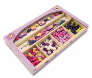 The colors of spring decorate the flowers, butterflies and other fun-shaped beads in this set. More than 150 wooden beads, to design sunny, jewelry creations for hours. Handy wooden storage tray with compartments, keeps the beads and colorful stringing cords neat and organized. Dimensions: 1.25" x 6.25" x 10" Packaged Recommended Ages: 4+ years