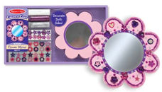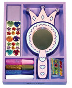 A pocket-sized wooden mirror with lots of sparkly stickers, "gems" and glitter glue are included for you to add your personal fashion statement. Decorated on both sides, this is your way to put "your best face forward"!