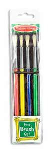 It's easy to paint every detail in the picture with this set of fine tip paint brushes. The set includes four easy to grasp, natural bristle brushes with easy-clean handles in a phthalate-free storage pouch. Dimensions: 8.75" x 0.75" x 2" Packaged Recommended Ages: 3+ years