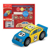 Everything your future car designer needs to design a wooden car today! Pre-cut car, 4 wheels, paints, brush, glue, stickers and easy directions will put your youngster on the "fast track" to design fun! Dimensions: 5.75" x 7.25" x 1.38" Assembled Recommended Ages: 4+ years Contains small parts.