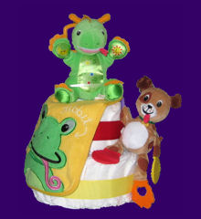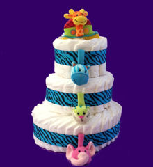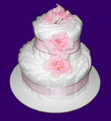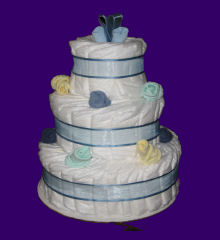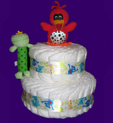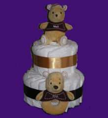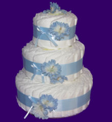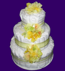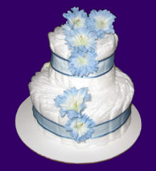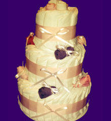 Especially Favoured diaper cakes are wrapped in cellophane, beautifully tied with premium ribbon, and include a gift tag for your personal greeting. If there is something you are looking for and cannot find please let us know and we may be able to customize a cake for you. Occasionally an item may be out of stock. In this case product substitutions of equal or greater value will be added for unavailable items.