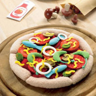 Olives, salami or extra cheese? The children can dress the pizza with the toppings they like! 6 pieces. Made of felt and velour, approx. 20 cm.