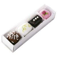These life-sized treats make the perfect addition to a play tea party. Each petit four is uniquely and intricately designed from polyester fabrics to look almost better than the real thing. The Petit Fours come in a cute box set of four, complete with individual wrappers.