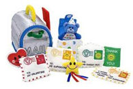 Soft plush mailbox full of happy greetings for your baby. Peek inside through the see-through back panel, raise the flag and open the door to remove your mail. Find envelopes for many special occasions with removable stamps and other treats. Put them in, take them out, it's always good news. Constructed of high quality fabrics and phthalate-free plastic for durable play. Dimensions: 10" x 6" x 11" Packaged Recommended Ages: 2+ years
