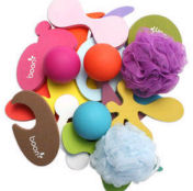 These designer toys do not absorb water, reducing mold and mildew. Their contemporary colors and funky forms look great in the modern bath. The mini-scrubbies are designed to fit little hands perfectly.