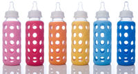 Baby can grab, hold and avoid slippage when feeding from a glass bottle encased in a colorful Siliskin. Microwave safe, hypo allergenic and dishwasher friendly, this translucent silicone sleeve allows you to see measurements and liquid in the bottle. Cleaner than any plastic, parents-in-the-know realize that glass bottles are the best.