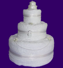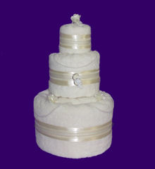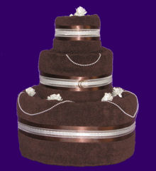 Present the bride and groom with towels in style!  A wedding towel cake is a great decoration at a bridal shower and and it is sure to bring delight to the bride-to-be. Wedding towel cakes are unique gifts that are sure to please everyone. All of our towel cakes are made upon ordering and can be customized with your wedding colours.
